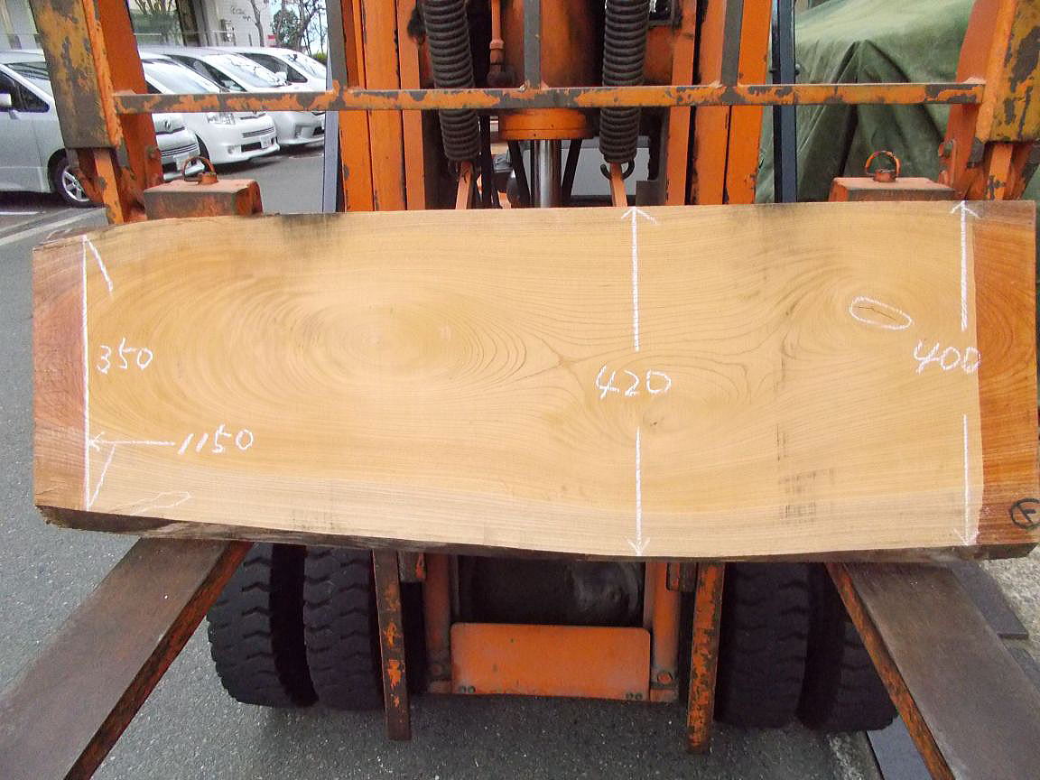 (上部の耳がありません。左下の白太と右の節に干割れがあります。)