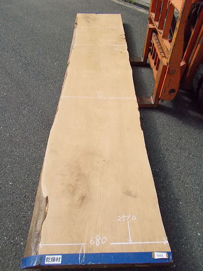 奉仕品 \495,000(税込) 総丈4000*680〜730*65 色々難はありますが、栗の板では 大変珍しい幅広材です。 |