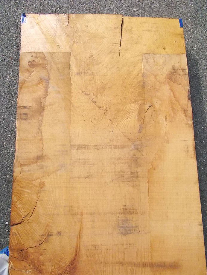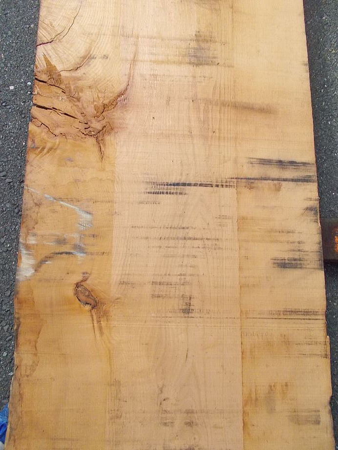 ![]() 裏面 (ハナ割れ・節・干割れ・センコウ虫穴があります。) ![]() ![]() ![]() ![]() 裏面拡大 (ハナ割れ・節・干割れ・センコウ虫穴があります。) |