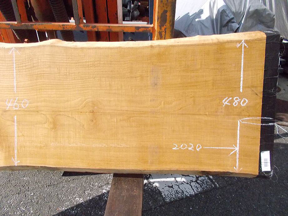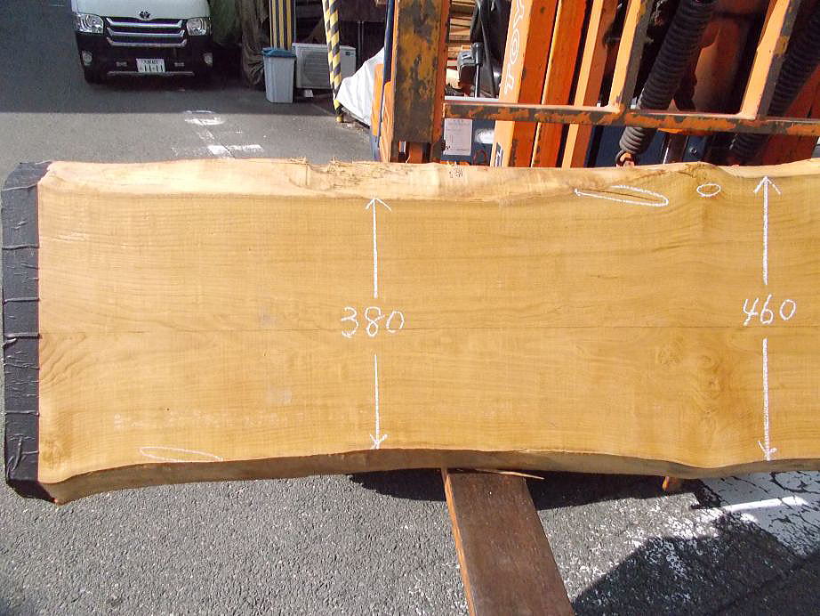 (12〜13mm程度の反りひねりがあります。チョークで囲われている部分に割れがあります)