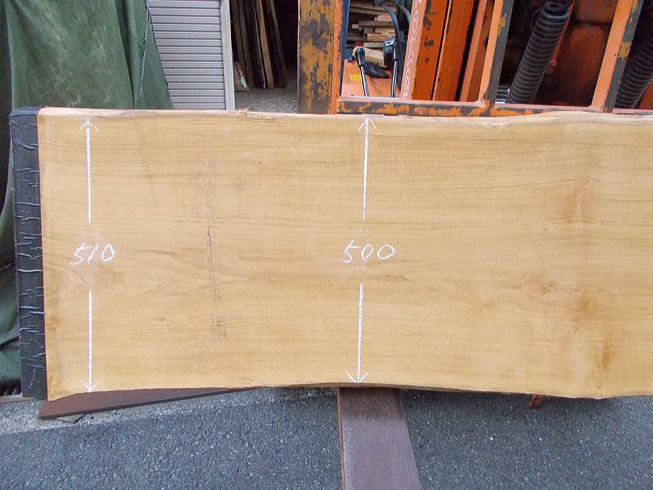(12〜13mm程度の反りひねりがあります。チョークで囲われている部分に割れがあります)