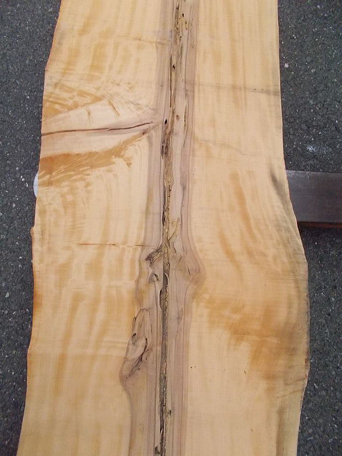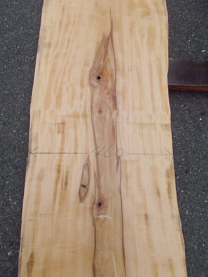 ![]() 裏面 (芯割れはあります。木芯の両サイドで純白の小割材がたくさん取れます。) ![]() ![]() ![]() ![]() 裏面拡大 (多少 表方向にむくっています。木芯の両サイドで純白の小割材がたくさん取れます。) |