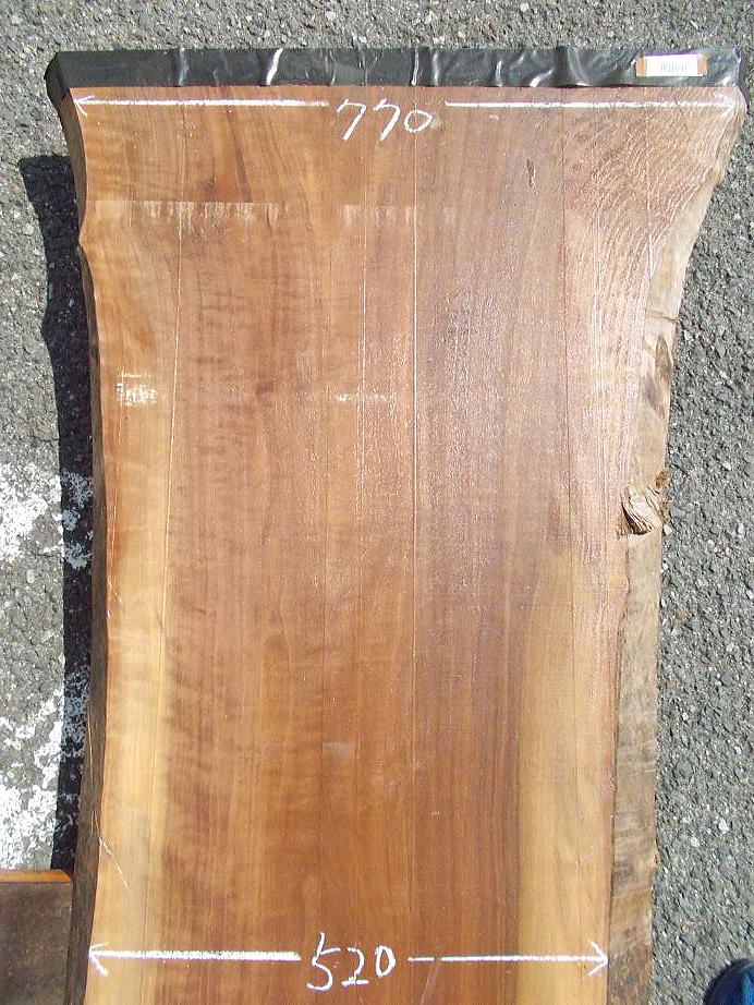 ![]() おもて面 (20mm程の縦反りがあります。) ![]() 裏面 (真ん中少し左に節穴があります。) |